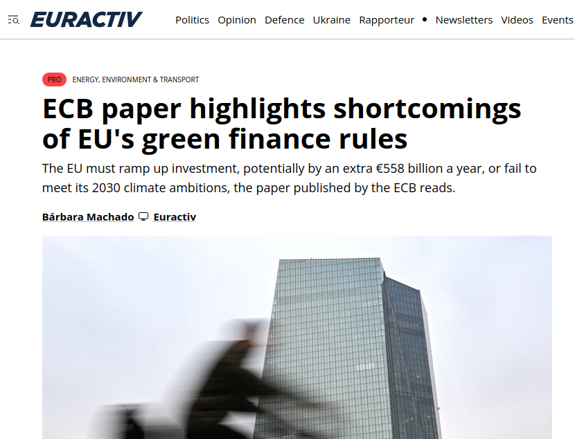 Stanislas Jourdan, policy expert at Sustainable Finance Lab, told Euractiv that the report “fails to talk about the elephant in the room,” namely that “right now, green lending barely gets rewarded.” Jourdan says the introduction of a green interest rate, “say 100 to 200 bps below the market rate” would be “a game changer”