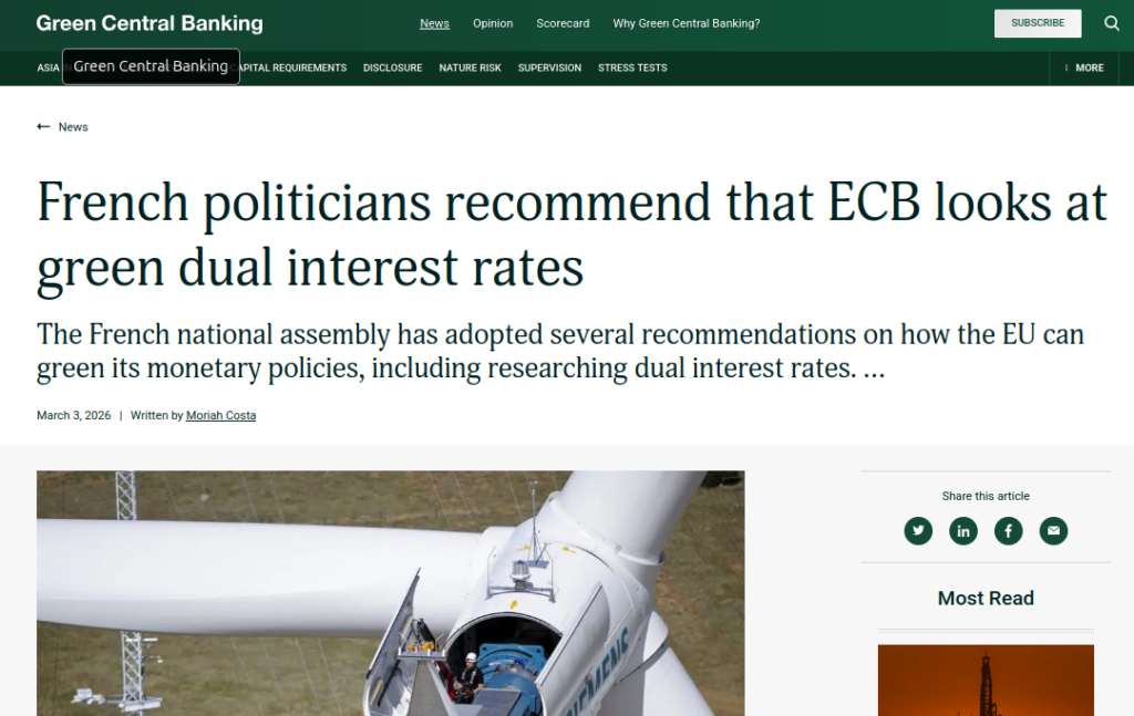 “more ambitious and pervasive policies are needed, such as the introduction of a lower green interest rate by the ECB. Such policy could deliver more favourable borrowing costs for selected types of taxonomy-aligned bank lending such as for renewables, energy efficiency renovation or electric vehicles, and to SMEs voluntarily carrying out CSRD reporting.”