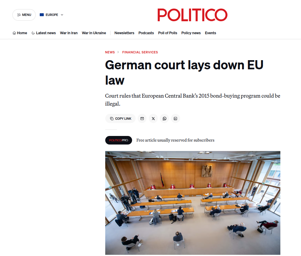 “After today’s ruling, it is clear that the Eurozone cannot continue to muddle through with creative interpretation of EU law by the ECB” Stanislas Jourdan said. “the EU should legally allow the ECB to use its money creation power to serve the public good, so these toxic legal complaints can be put to an end for good.”