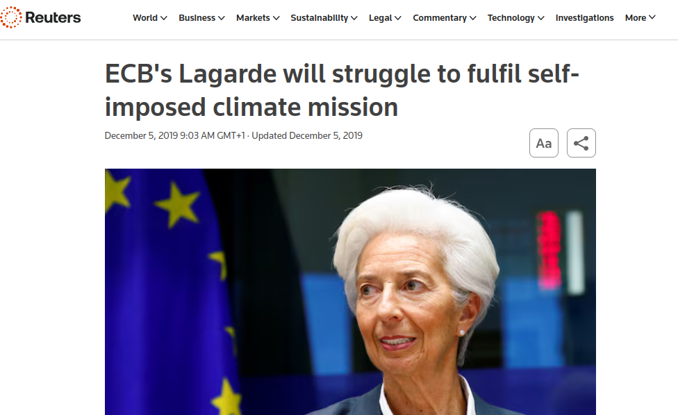 “The ECB could also apply a larger haircut on polluting assets offered as collateral in its market operations, Stanislas Jourdan of lobby group Positive Money Europe said after meeting Lagarde this week. “Part of the problem is that the ECB relies so much on credit ratings, and credit ratings don’t incorporate climate risk”