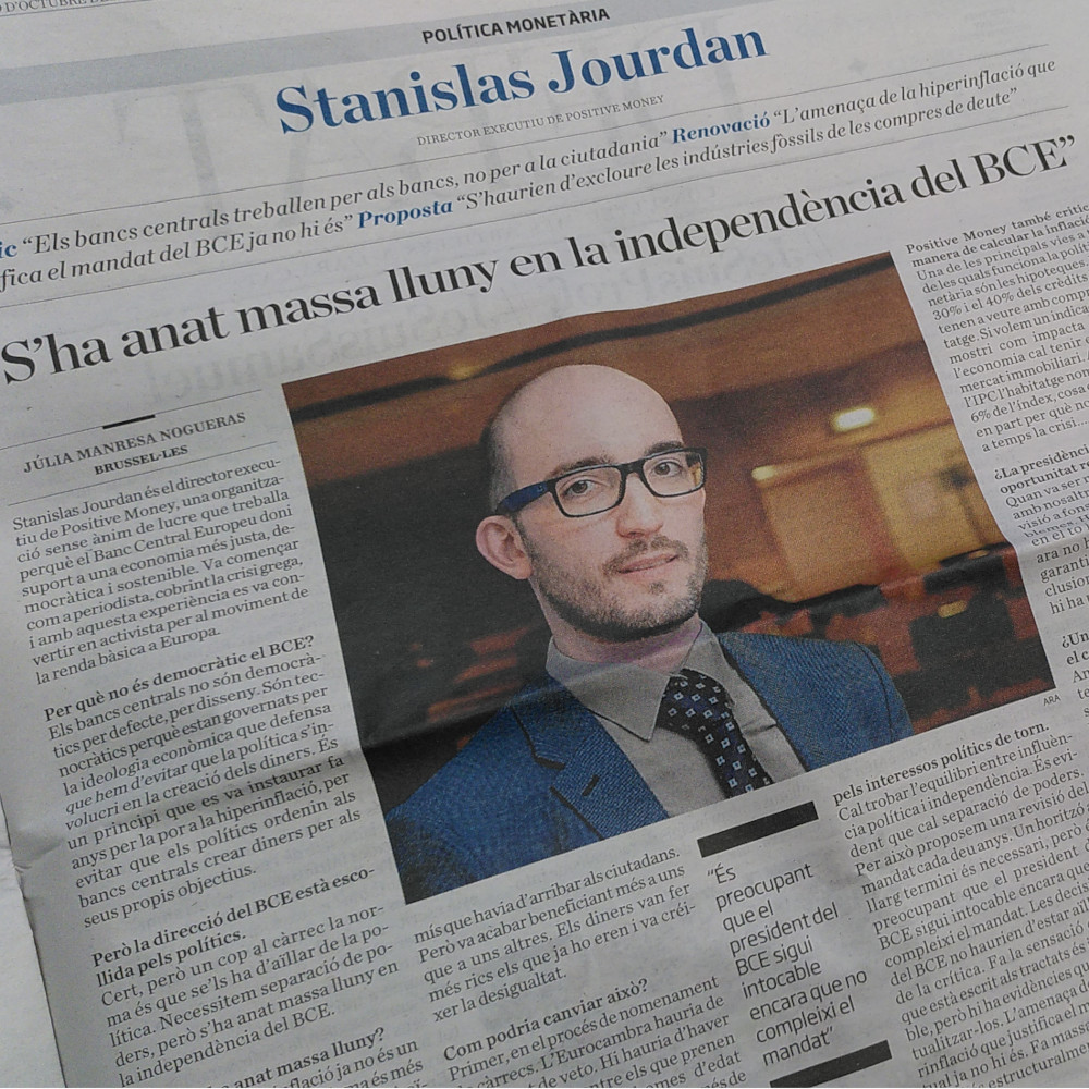 In this interview, Positive Money Europe’s Stanislas Jourdan explains that 97% of our money is currently created by private banks when they issue loans, rather than by the state. He argues that this system forces the economy into a cycle of debt and instability. He advocates for “Quantitative Easing for People” or “Green QE”.
